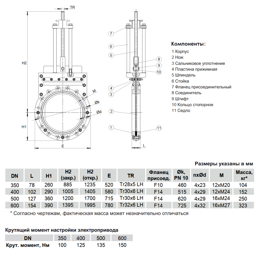 Задвижка шиберная VGA S72.50 DN 350 PN 10 с выдвижным шпинделем с ISO фланцем