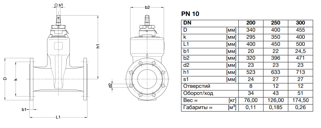 Задвижка VAG BETA 200 DN 250 PN 10 клиновая длинная