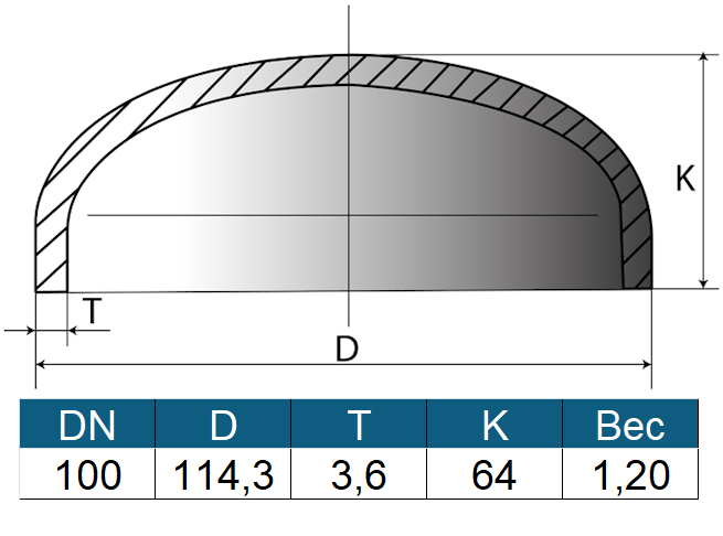 Заглушка 114,3х3,6 (ду100) ГОСТ 17379-2001 эллиптическая стальная