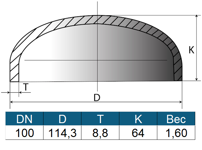 Заглушка 114,3х8,8 (ду100) ГОСТ 17379-2001 эллиптическая стальная
