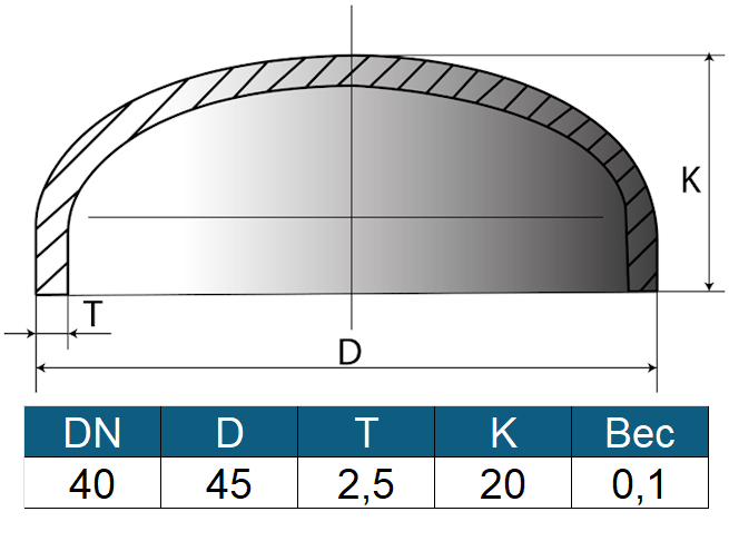 Заглушка 45х2,5 (ду40) ГОСТ 17379-2001 эллиптическая стальная
