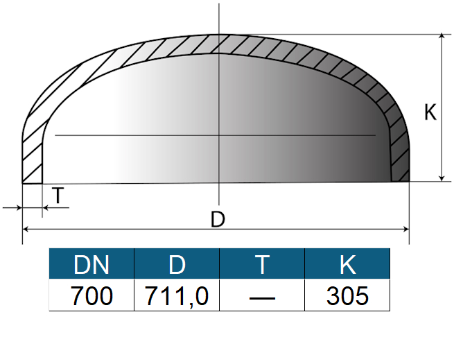 Заглушка 711 (ду700) ГОСТ 17379-2001 эллиптическая стальная