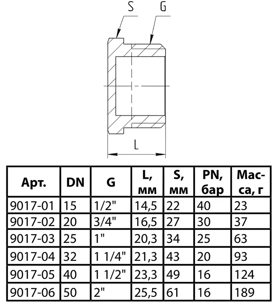 Заглушка латунная Aquasfera 9017 DN 20 PN 30 резьба - 3/4'', покрытие - никель, резьбовая НР, 9017-02
