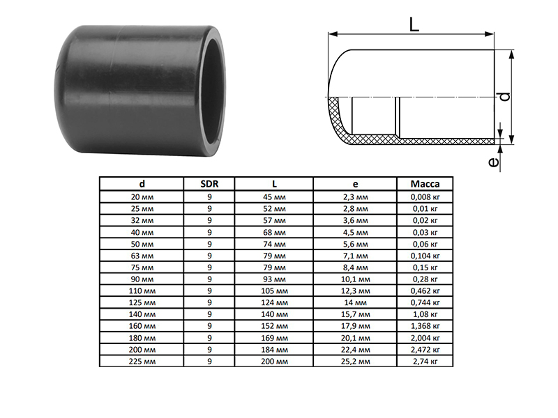 Заглушка литая 110 мм SDR 9 ПЭ100 спигот