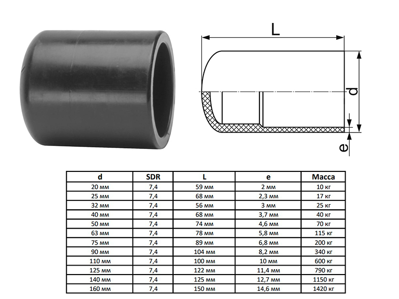 Заглушка литая 40 мм SDR 7,4 ПЭ100 спигот