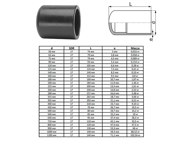 Заглушка литая 90 мм SDR 17 ПЭ100 спигот