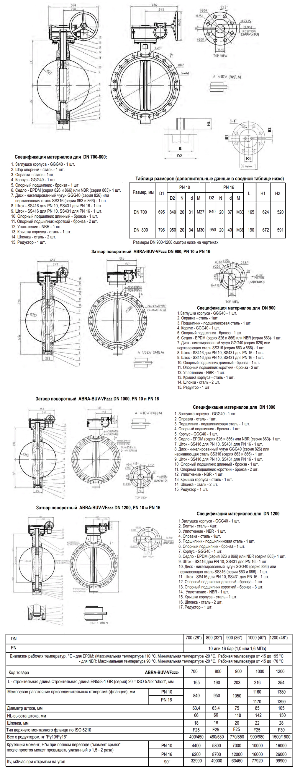 Затвор дисковый поворотный ABRA BUV-VF 863 DN 800 PN 16 межфланцевый с редуктором