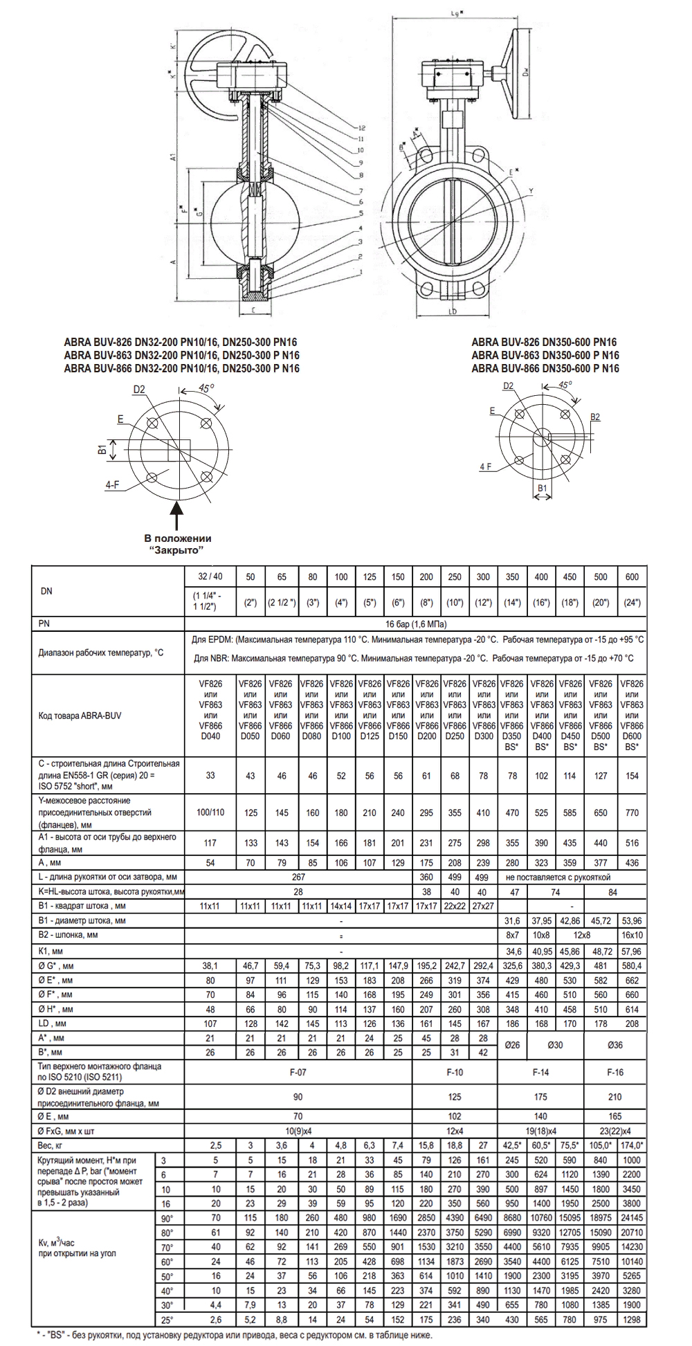 Затвор дисковый поворотный ABRA BUV-VF 866 DN 40 PN 16/10 межфланцевый с редуктором