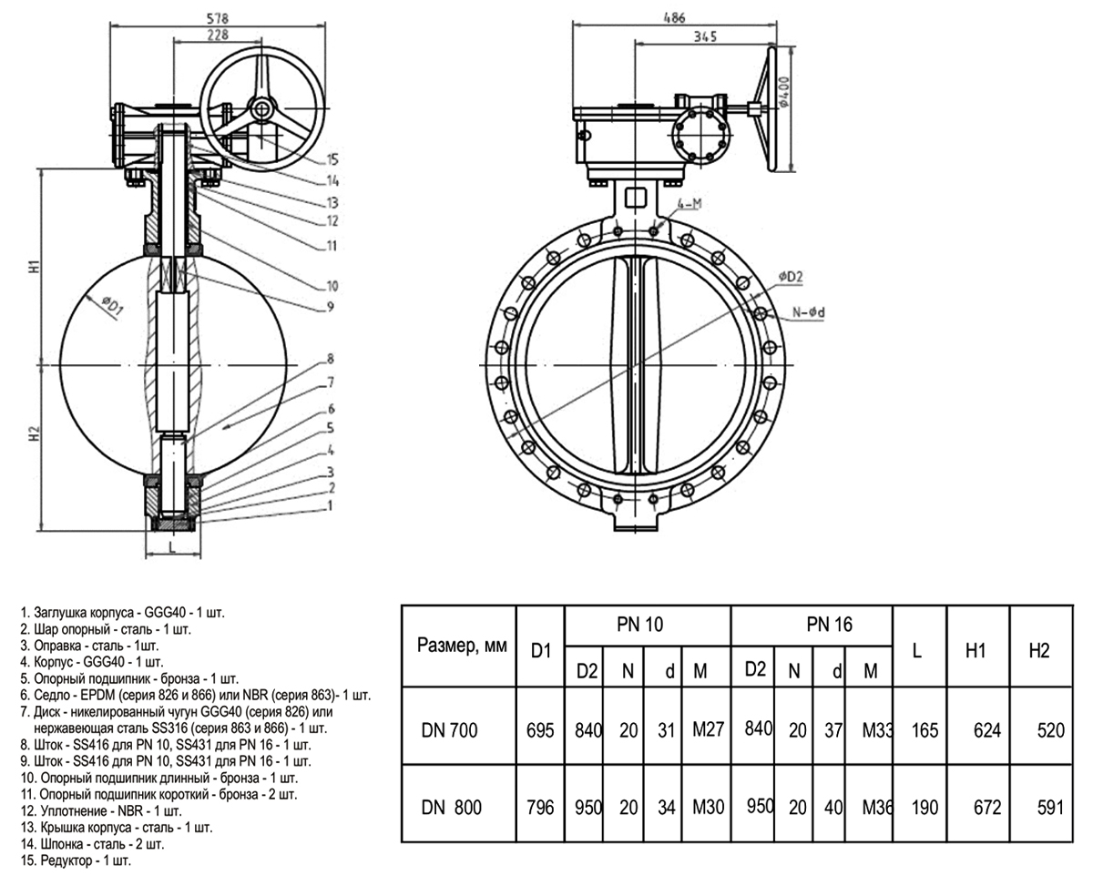Затвор дисковый поворотный ABRA BUV-VF 866 DN 700 PN 16 межфланцевый с редуктором