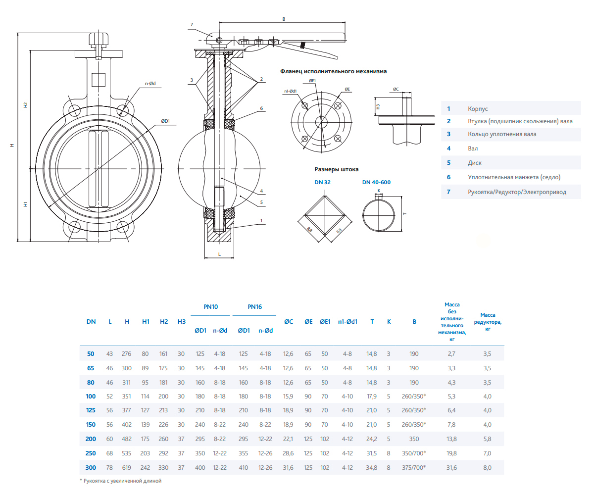 Затвор DENDOR 017W DN 50 PN 16 поворотный дисковый межфланцевый чугунный с рукояткой для систем пожаротушения
