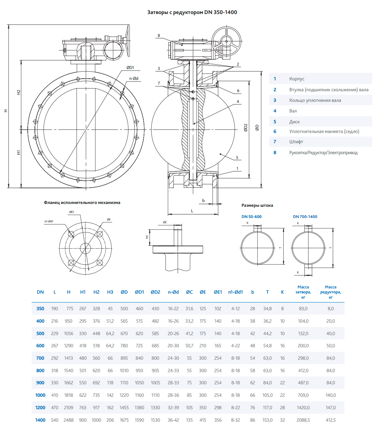 Затвор DENDOR 021F DN 1200 PN 10 поворотный дисковый фланцевый с редуктором