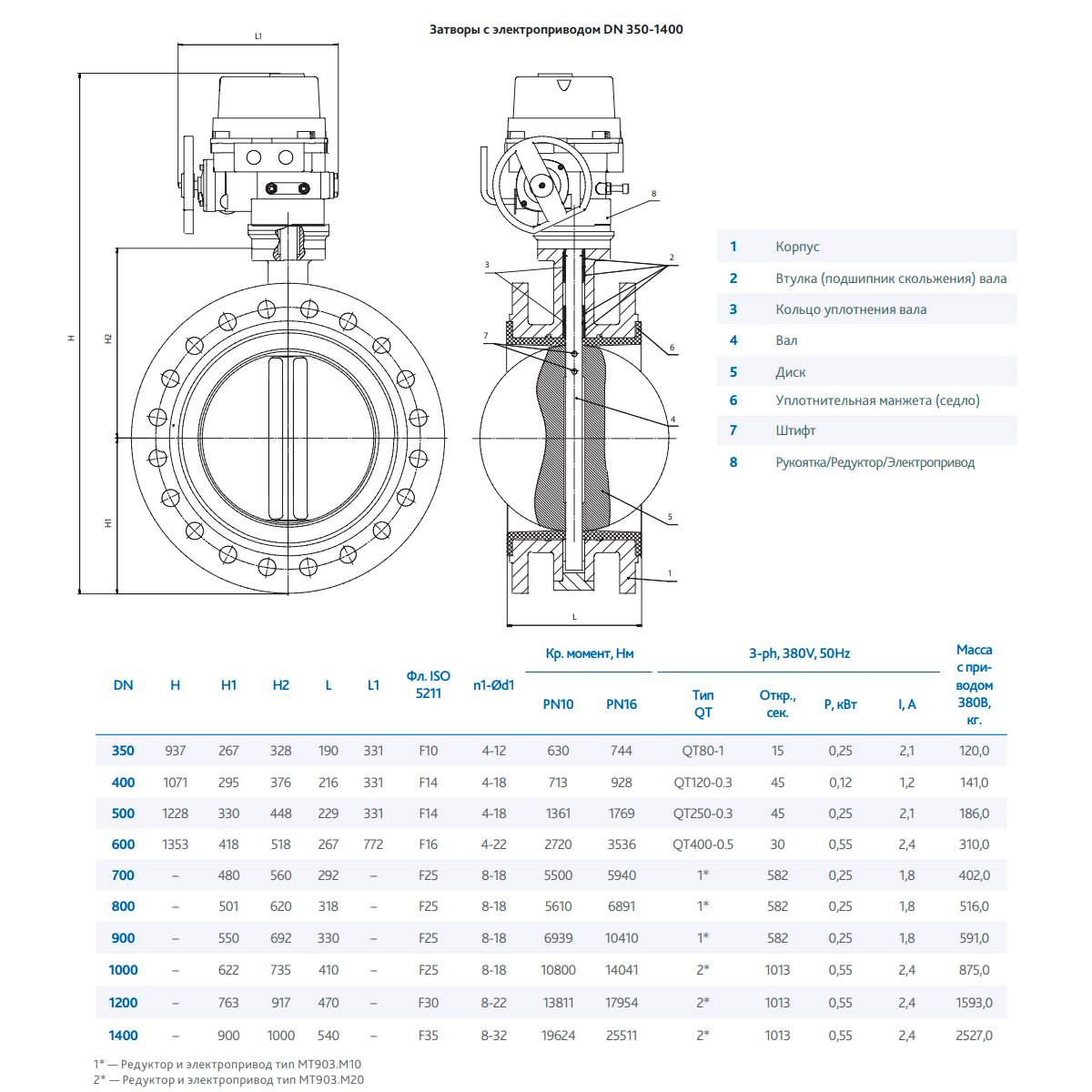 Затвор DENDOR 021F DN 400 PN 16 поворотный дисковый фланцевый с электроприводом