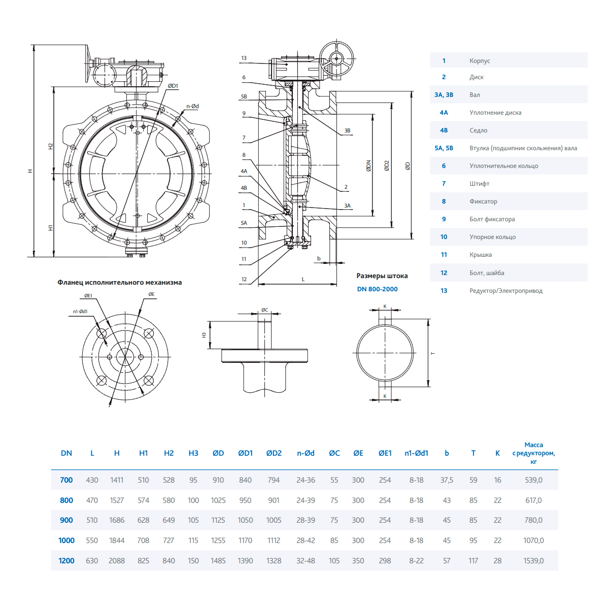 Затвор DENDOR 023F DN 1200 PN 16 поворотный дисковый c двумя эксцентриситетами фланцевый чугунный с редуктором