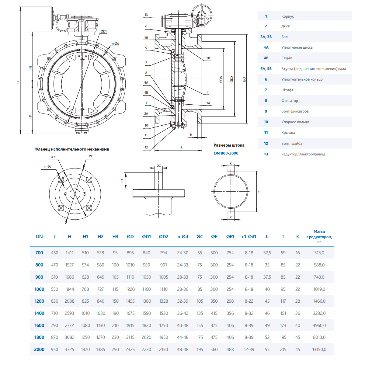 Затвор DENDOR 023F DN 1600 PN 10 поворотный дисковый c двумя эксцентриситетами фланцевый чугунный с редуктором