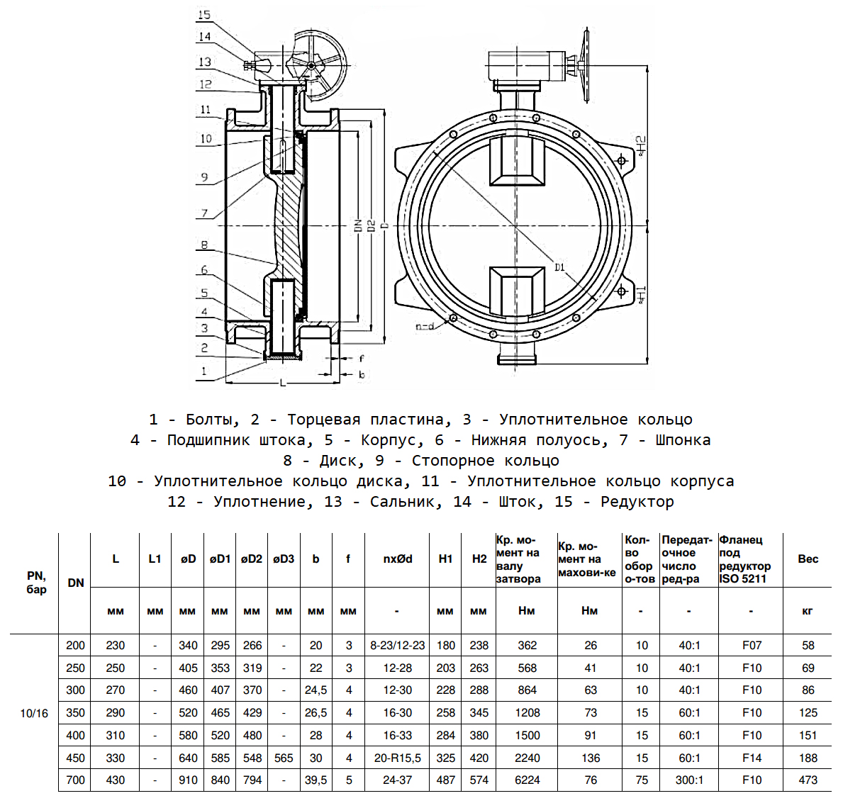 Затвор дисковый чугунный Benarmo 2210RA DN 700 PN 10/16 поворотный фланцевый двухэксцентриковый с редуктором