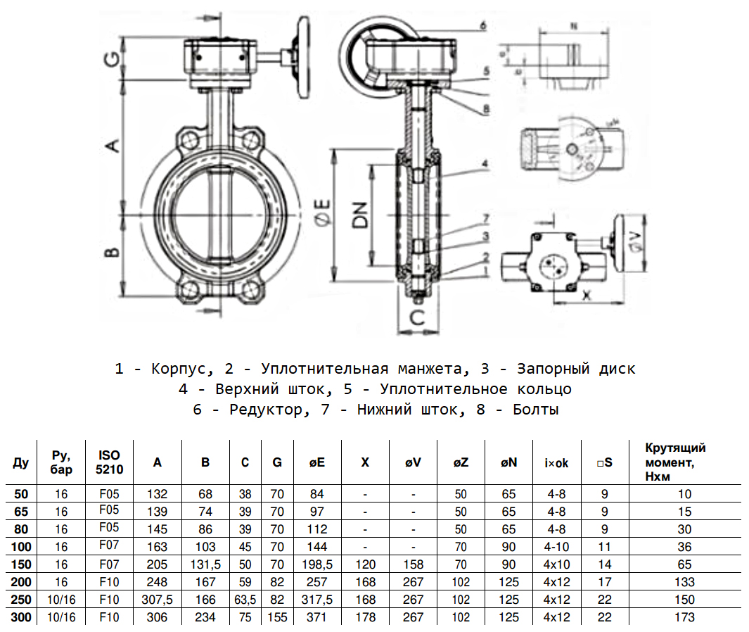 Затвор дисковый чугунный Benarmo FBV-RA DN 50 PN 16 поворотный межфланцевый с редуктором с концевыми выключателями EURO