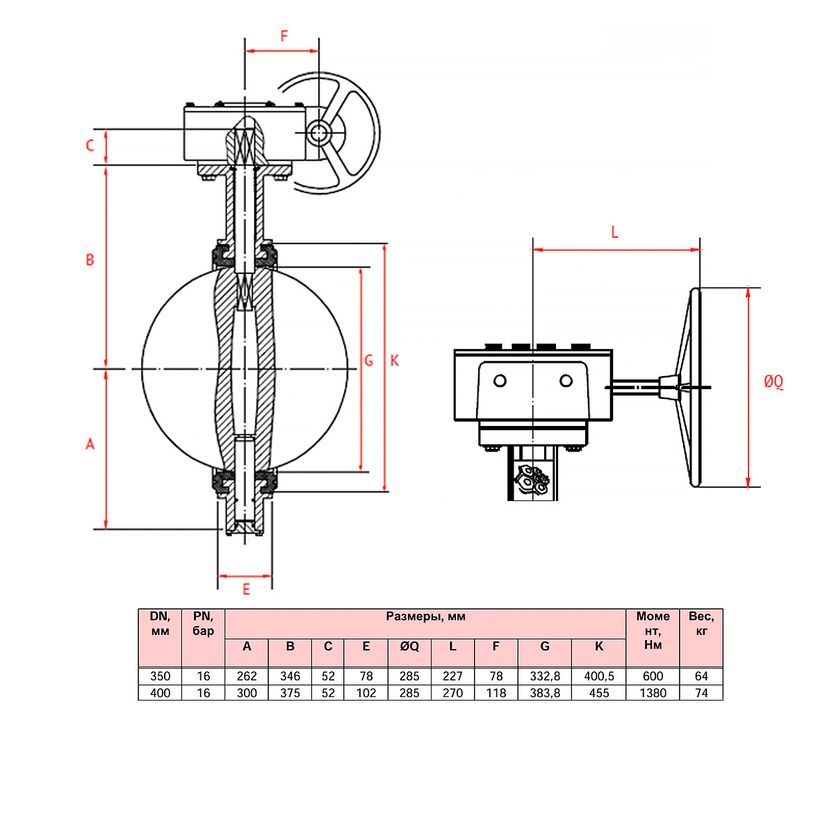 Затвор дисковый поворотный РАШВОРК 200 Ду350 Ру16 с пневмоприводом двойного действия РАШВОРК DA-802, диск чугун GJS-400-15 (GGG40)