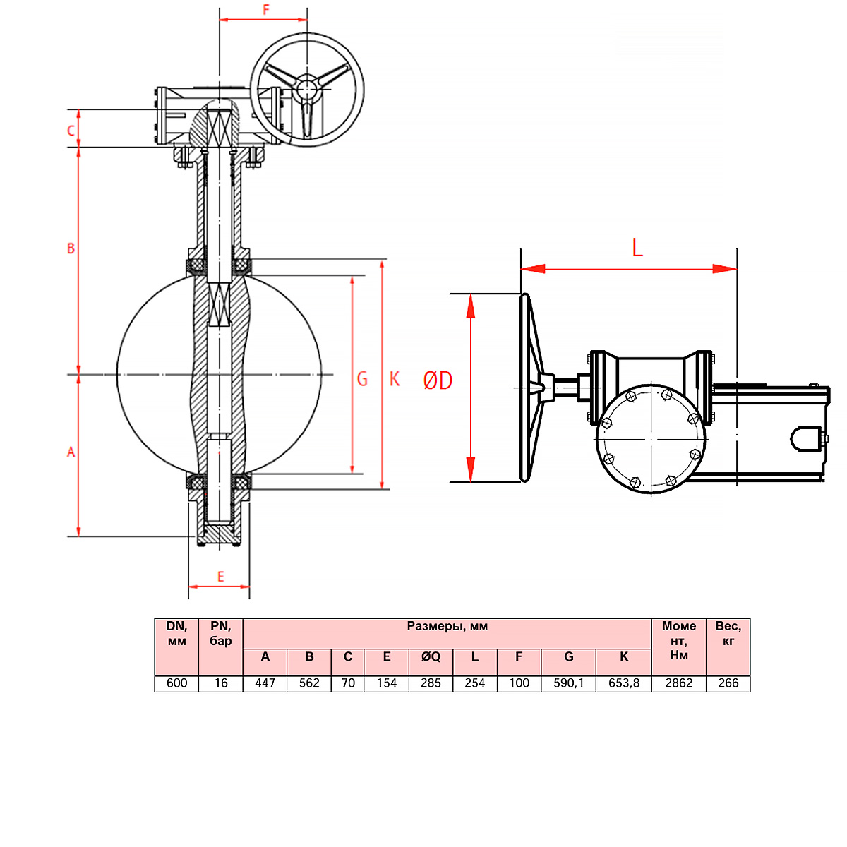 Затвор дисковый поворотный РАШВОРК 200 Ду600 Ру16 с пневмоприводом двойного действия РАШВОРК DA-4832, диск чугун GJS-400-15 (GGG40)