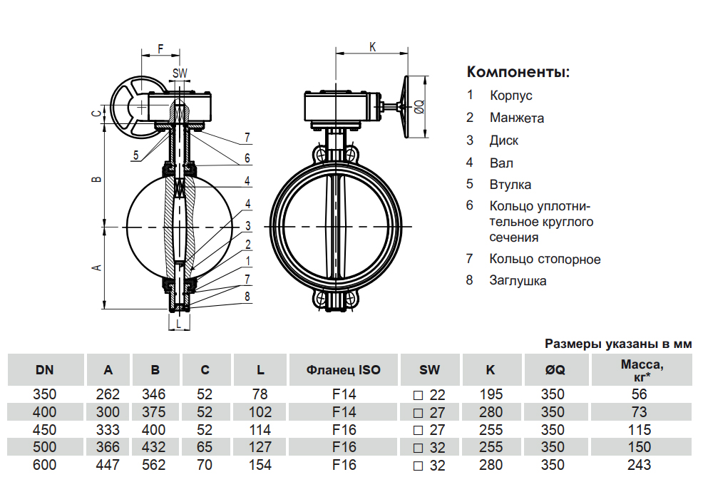 Затвор дисковый VGA K14.10 DN 400 PN 16 без эксцентриситета межфланцевый