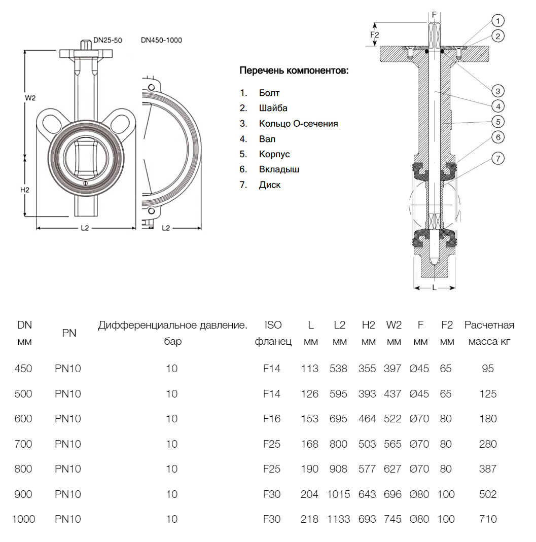 Затвор дисковый поворотный межфланцевый AVK 820/00 PN 10 DN 700