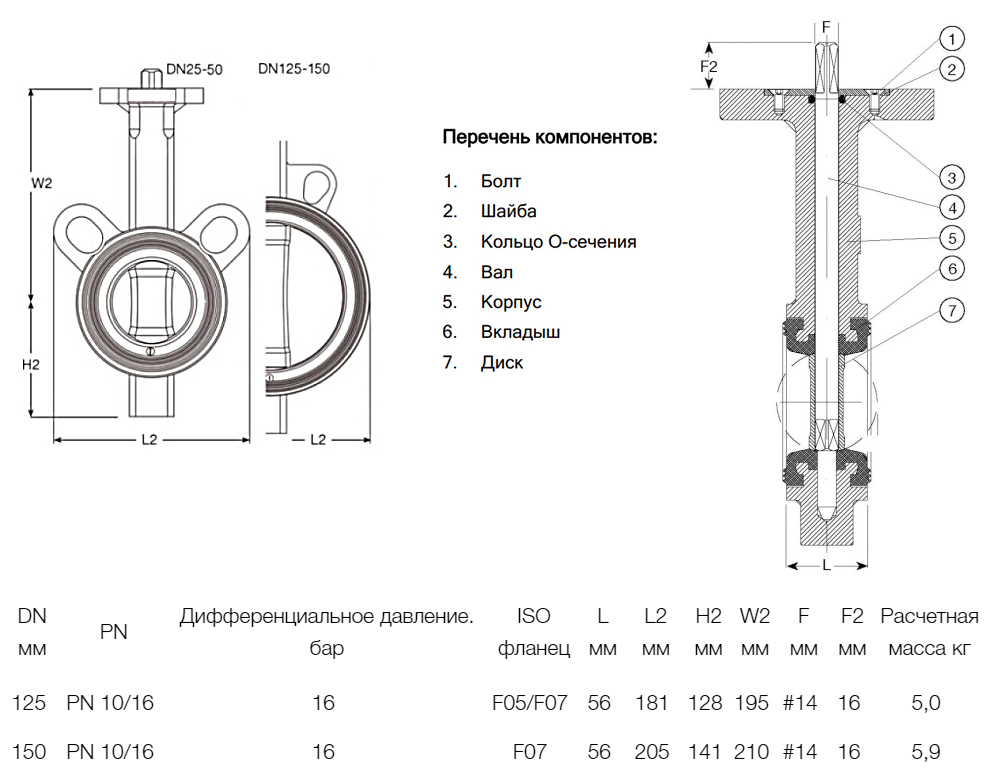 Затвор дисковый поворотный межфланцевый AVK 820/00 PN 16 DN 150