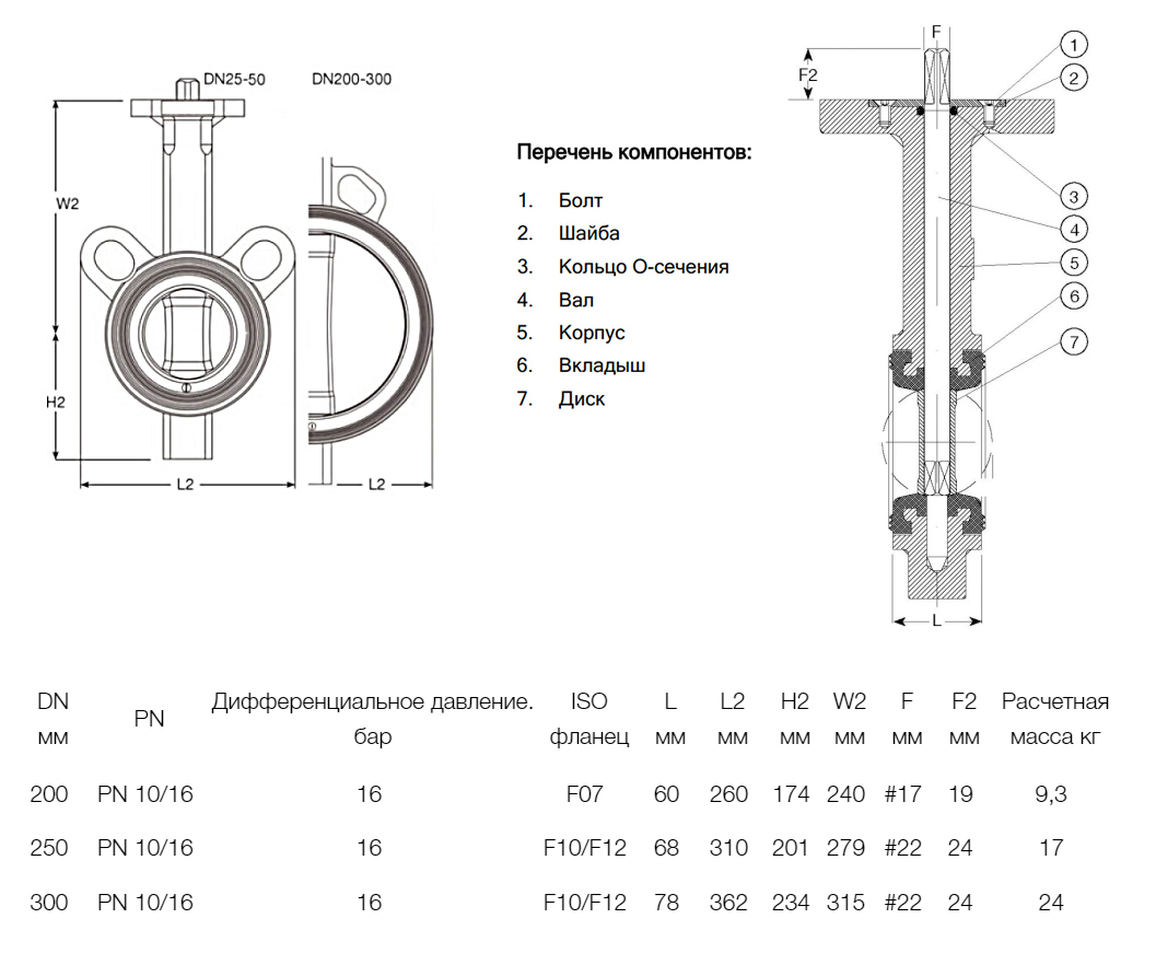 Затвор дисковый поворотный межфланцевый AVK 820/00 PN 16 DN 200