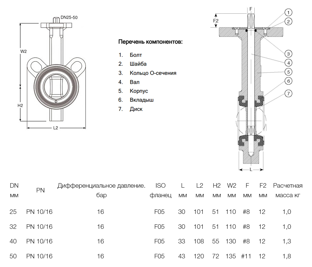 Затвор дисковый поворотный межфланцевый AVK 820/00 PN 16 DN 40