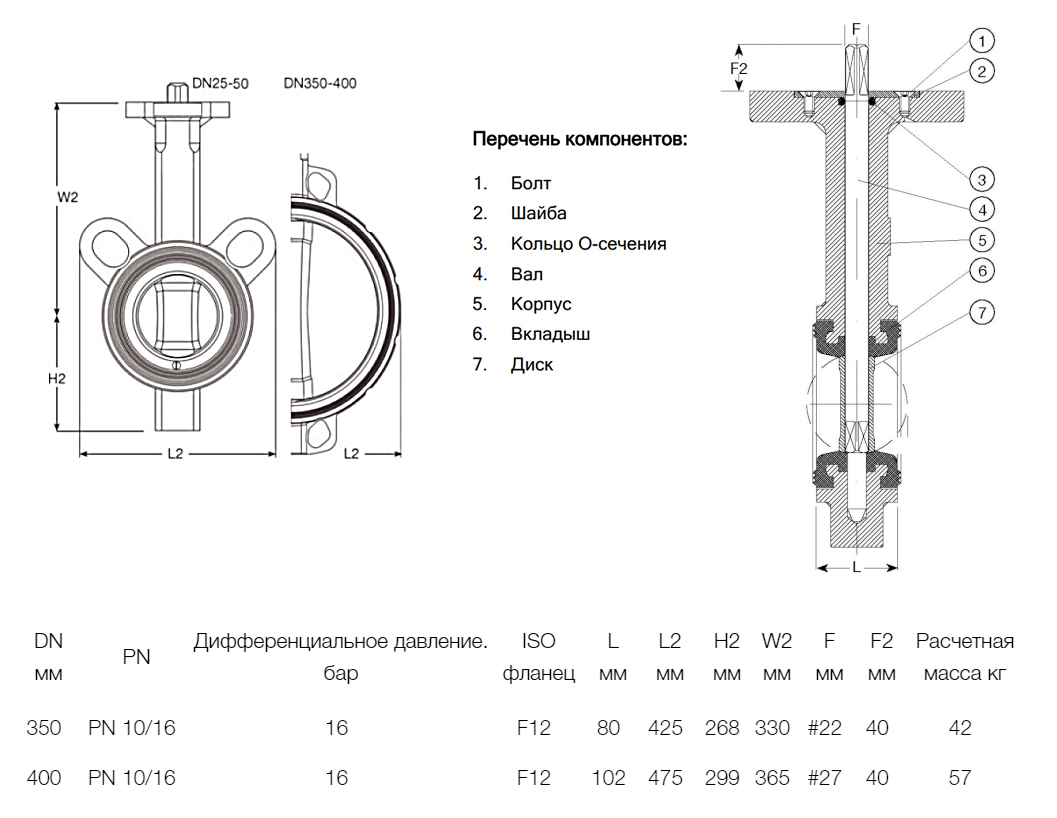 Затвор дисковый поворотный межфланцевый AVK 820/00 PN 16 DN 400