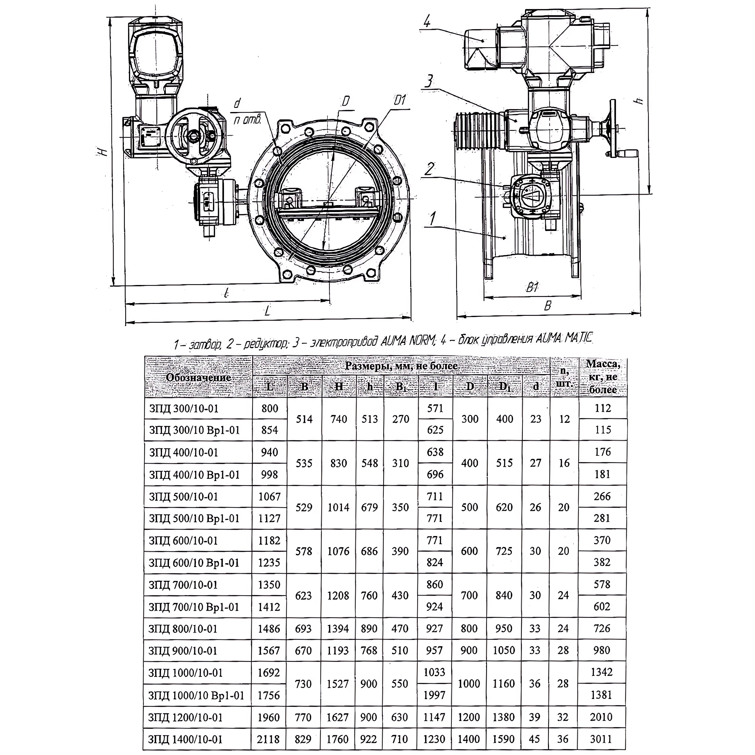 Затвор ЭНЭКОС DN 900 PN 10 поворотный фланцевый с двойным эксцентриком с редуктором, электроприводом и блоком управления