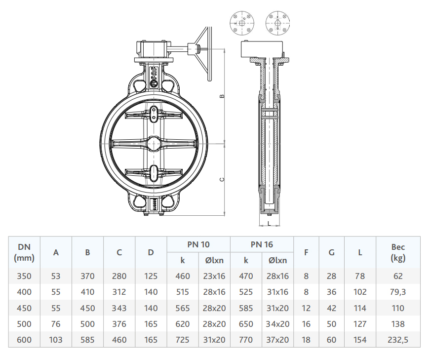 Затвор FAF 3500 DN 600 PN 16 дисковый межфланцевый с редуктором