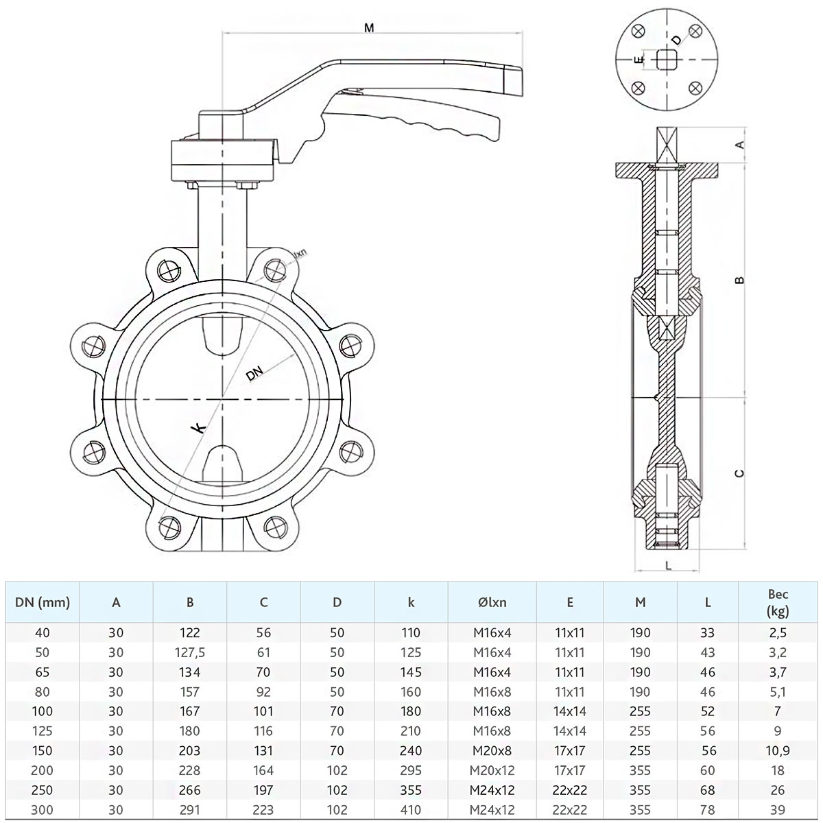 Затвор FAF 3600 DN 200 PN 16 дисковый фланцевый с рукояткой