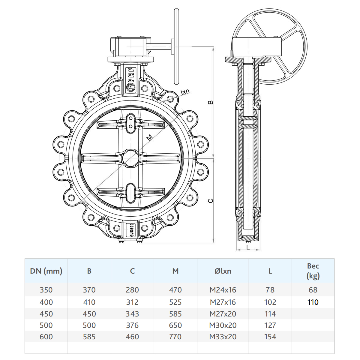 Затвор FAF 3600 DN 600 PN 16 дисковый фланцевый с редуктором