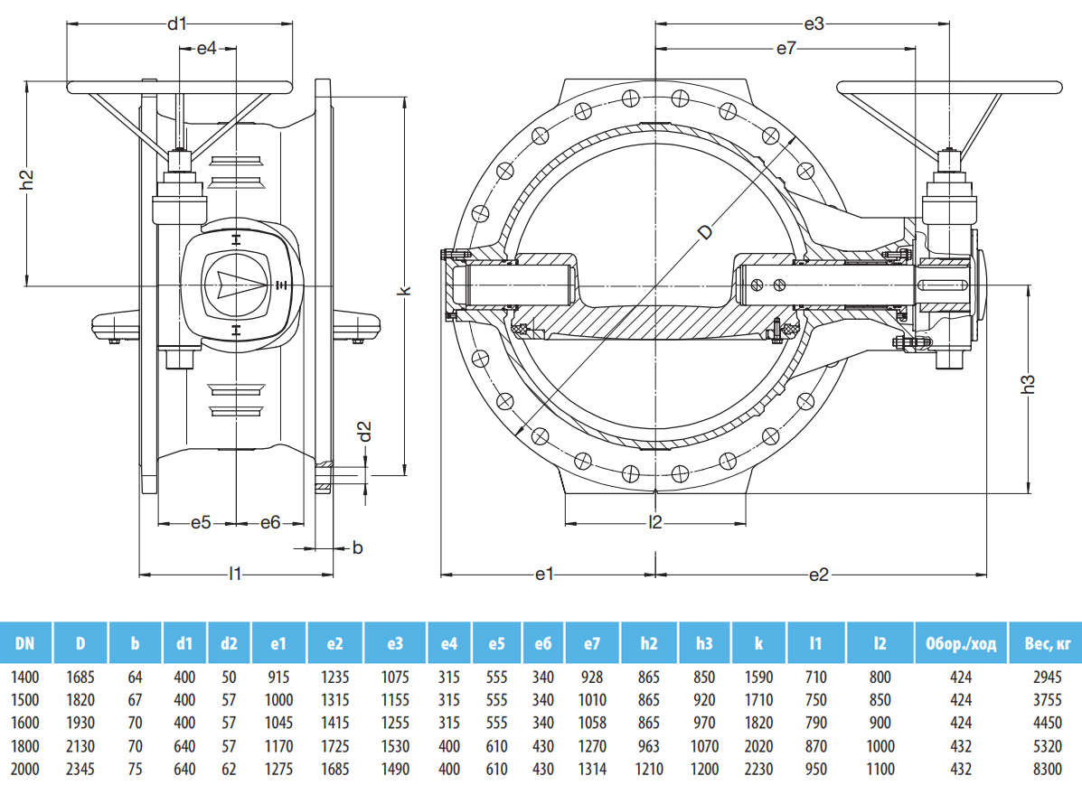 Затвор поворотный VAG EKN DN 1500 PN 16 с двойным эксцентриком