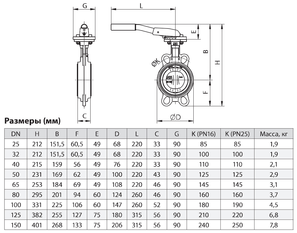 Затвор ЗПНС ADL ГРАНВЭЛ DN 150 PN 16 с рукояткой MN